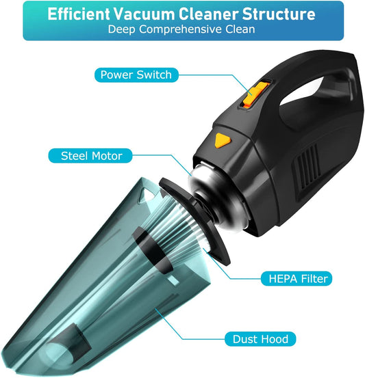 Car Vacuum,Portable Car Vacuum Cordless Cleaner Rechargeable with 120W High Power,Strong Suction,Mini Handheld Car Vacuum for Pet Hair,Home and Car Cleaning
