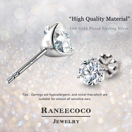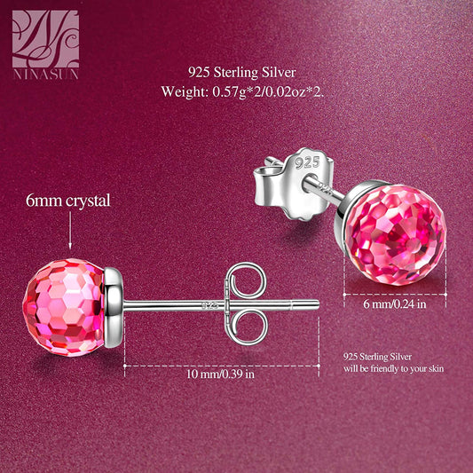 "Fantastic World" Crystal Earrings for Women Girls, 925 Sterling Silver Stud Earrings, Hypoallergenic Earrings for Sensitive Ears, 6MM