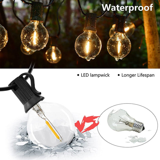 100ft 2-Pack Outdoor String Lights,Dimmable G40 LED String Lights with 52 Shatterproof Clear Bulbs UL Approval Waterproof Globe 1W 2700K Outdoor Lighting for Backyard Porch Cafe Party Wedding Garden