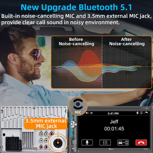 Double Din Car Stereo, 7 Inch Full HD Capacitive Touchscreen Car Radio Receiver with Mirror Link, Bluetooth 5.1, Backup Camera, Steering Wheel Control, Subw, FM/AM Car Radio, USB /TF/AUX