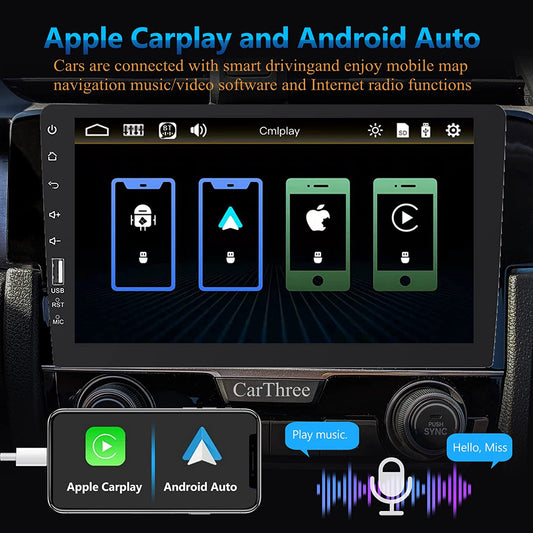 Single Din Car Stereo Compatible with Apple Carplay Android Auto 9 Inch Touch Screen Car Stereo with Bluetooth Car Radio MP5 Player with A/V Input Mirror Link Backup Camera SWC
