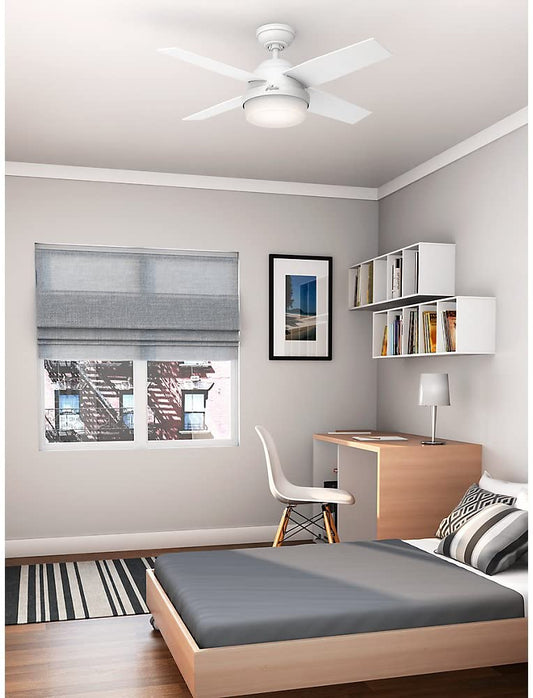 Hunter Fan Dempsey Low Profile Indoor Ceiling Fan with LED Light and Remote Control, Metal, Fresh White, 44 Inch