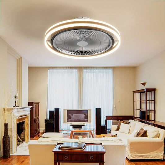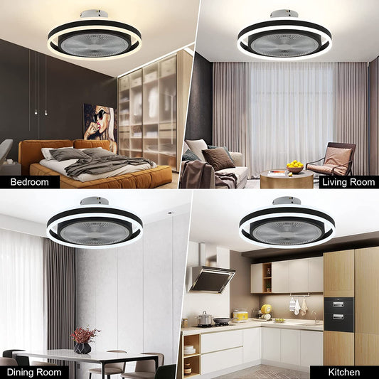 Ceiling Fan with Lights Remote Control 20" Enclosed Low Profile Ceiling Fan with Light Flush Mount Bladeless Ceiling Fan 3 Speed 3 Color Dimmable 72W Modern Ceiling Fan Light Kit for Bedroom Kitchen