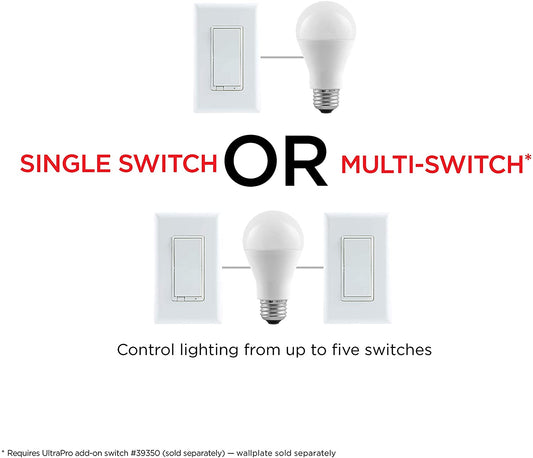UltraPro Z-Wave Smart Rocker Light Switch with QuickFit and SimpleWire, 3-Way Ready, Compatible with Alexa, Google Assistant, ZWave Hub Required, Repeater/Range Extender, White Paddle Only, 39348