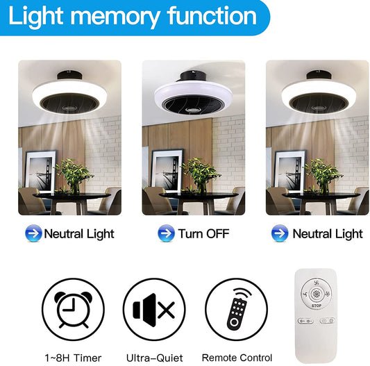 Ceiling Fan with Lights and Remote Control, Modern Enclosed Bladeless Ceiling Fan, Dimmable 3 Color 3 Speeds Timing, Indoor Flush Mount Low Profile Fan for Kids Room Bedroom Living Room