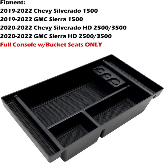 Center Console Organizer Tray fits for 2019-2022 GMC Sierra/Chevy Silverado 1500 Accessories 2020-2021 2022 Chevy Silverado/GMC Sierra 2500 HD/3500 HD -Full Center Console Models Only(Black)