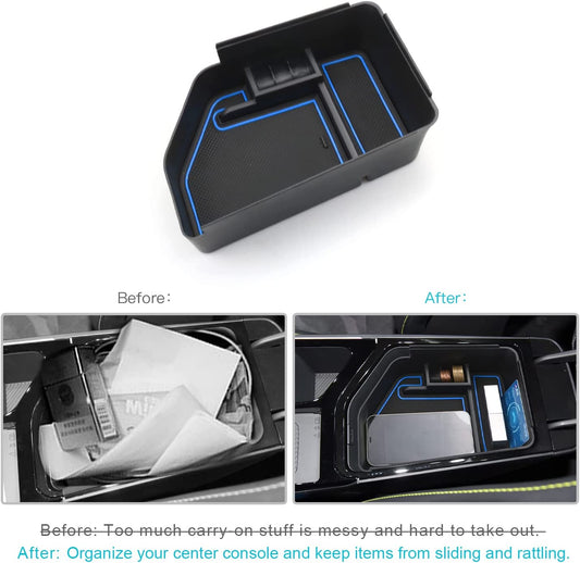 Center Console Organizer Tray for 2022 Kia EV6 Accessories Armrest Storage Box Secondary Insert Tray Coin Container Black ABS Material with 1 Colored Mats (Blue Mat)