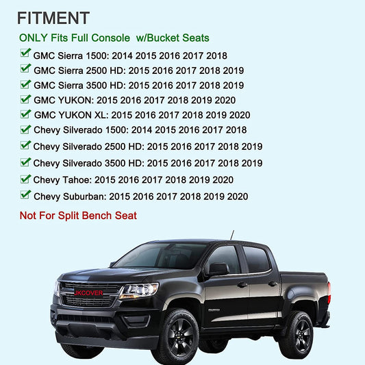 Compatible with Chevy Silverado/GMC Sierra 2014-2018 and Chevy Tahoe Suburban/GMC Yukon 2015-2020 Center Console Organizer Tray Accessories-Full Console w/Bucket Seats ONLY - (Black Trim)