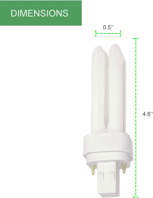 13 Watt CFL Light Bulbs 2 Pin GX23-2 Base 2700K Soft White 13W High Output 800 Lumens Double Tube Compact Fluorescent Light Bulbs Plug-in 4 Pack by Dysmio