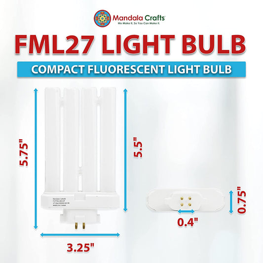 27-Watt 6500 K Compact Fluorescent Light Bulb with Quad Tubes, 4-pin, GX10q-4 Base; 2 Pack; by Mandala Crafts