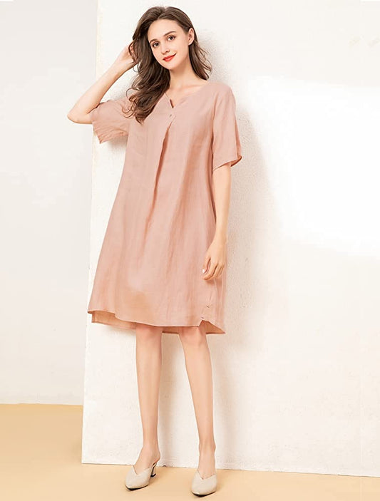 Women's Linen Tunic Dresses V-Neck Baggy Midi Dress Hi-Low Tops