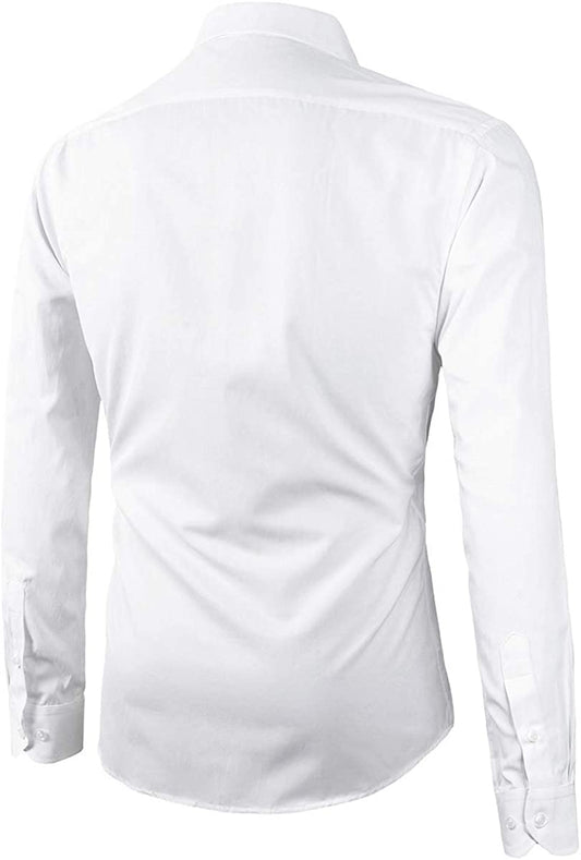 Slim Fit Solid Point Collar Button Down Dress Shirt