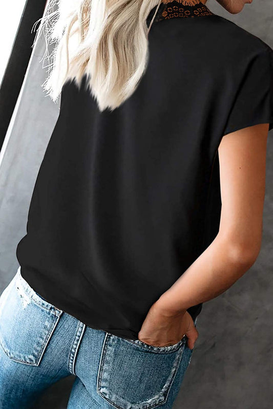 Dressy Lace Trim Blouse Tops Popular Short Sleeve Shirt