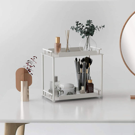 Bathroom Organizer Countertop,2 Tier Bathroom Counter Organizer Kitchen Spice Rack Cosmetic Organizer,Countertop Storage Shelf for Bathroom, Kitchen, Living Room, Bedroom, Dressing Table,White