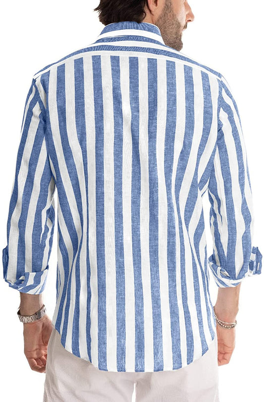 Men's Casual Long Sleeve Button-Down Shirts Striped Dress Shirts Cotton Shirt