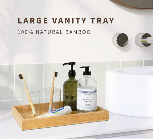 Bamboo Bathroom Counter Tray - Slip-Resistant - Large Vanity Trays for Dresser Top - Wooden Organizer for Perfume, Cologne - Decorative Holder for Skincare