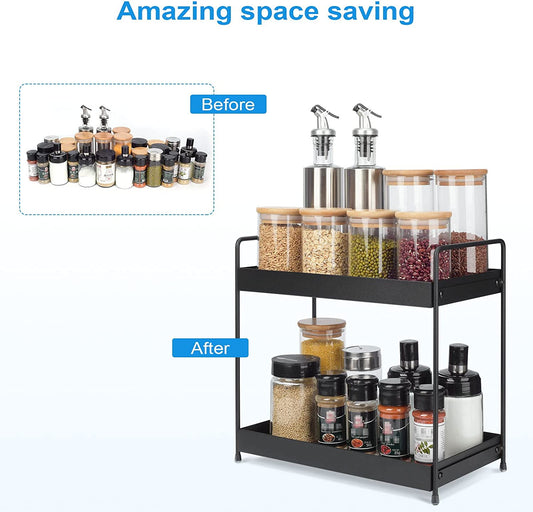 2 Tier Bathroom Organizer Countertop Storage, Makeup Holder Spice Rack Organization Cabinet Organizers Tray for Dresser Cosmetic Shelf Home Kitchen