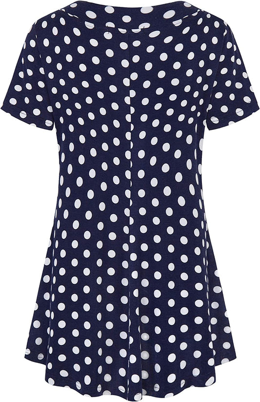 Women's Tunic Summer Short Sleeve Top Loose V Neck Dressy Shirt Blouse