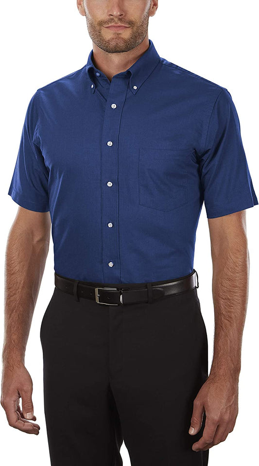 Heusen Men's Short Sleeve Dress Shirt Regular Fit Oxford Solid