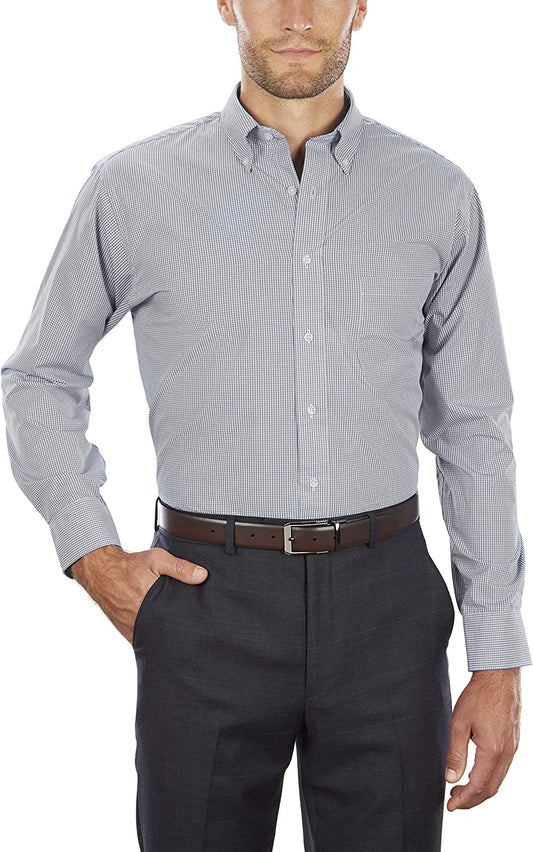 Heusen Men's Regular Fit Gingham Button Down Collar Dress Shirt