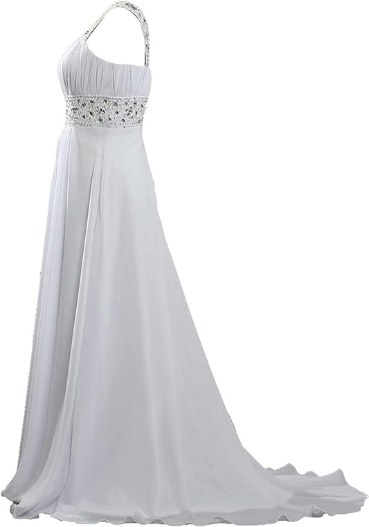Women's Lace Chiffon Beach Wedding Dresses for Bride 2022 with Sleeves Long Bridal Gown