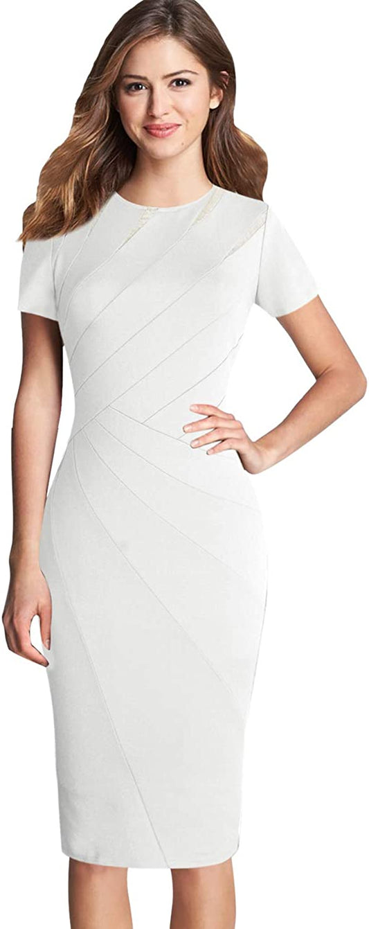 Women's Business Retro Cocktail Pencil Wear to Work Office Casual Dress