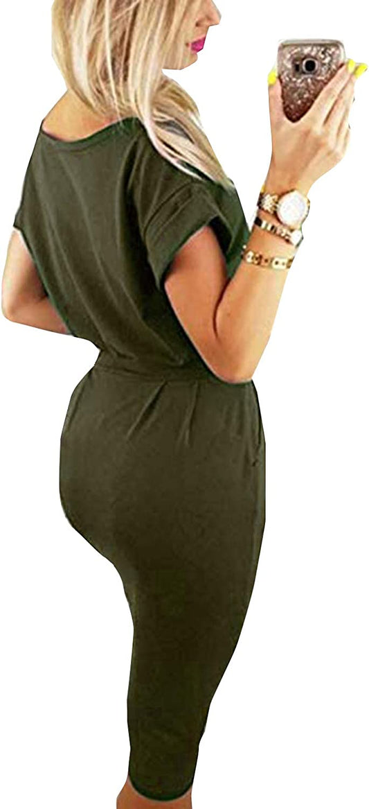Women's Elegant Short Sleeve Wear to Work Casual Pencil Dress with Belt …