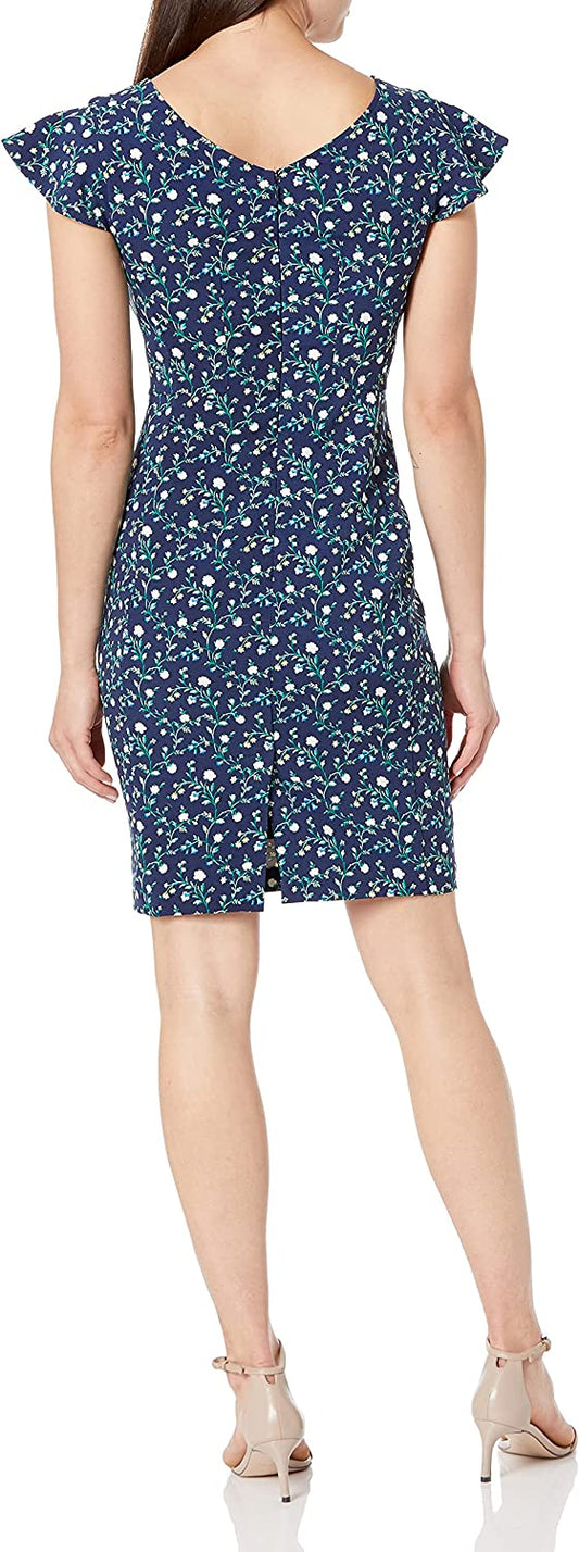 Women's Flutter Sleeve Double V Neck Sheath Dress