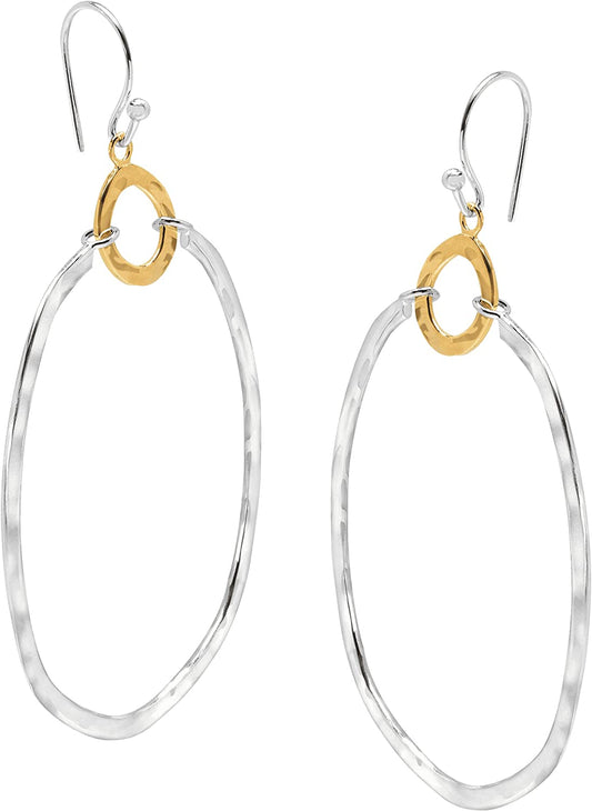 Silpada .925 Sterling Silver & Brass Hoop Earrings for Women, Jewelry Gift Idea, French Wire Back-Findings, Dynamic Duo'