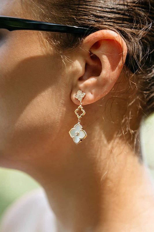 Gemstone and Cubic Zirconia Three Flower Drop Dangle Earrings for Women in 925 Sterling Silver with Gold Plating Push Back by Lavari Jewelers