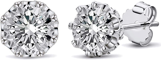 18K White Gold Plated Brilliant Cut Cubic Zirconia Stud Earrings For Women Men 8 Prong 8 Zirconia Sterling Silver Post Hypoallergenic CZ Stud Earrings
