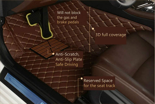 Custom Making Car Floor Mats for 95% Sedan SUV Sports Car Full Coverage Cute Men Women Pads Protection Non-Slip Leather Floor Liners (Brown)