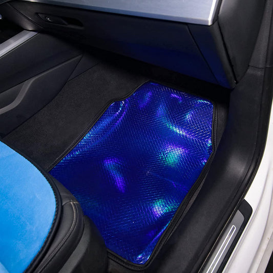 Leather Waterproof&Anti Slip Car Floor Mats for Men&Women,All Weather Universal Automotive Carpet with Hologram Laser Design (Blue)
