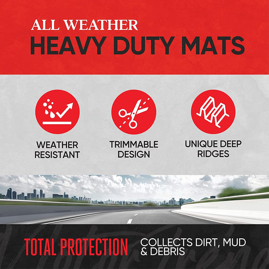 FlexTough Advanced Black Rubber Car Floor Mats - 3 Piece Front & Rear Trim to Fit Floor Mats for Cars Truck SUV, All Weather Automotive Liners with Traction Grips and Multiple Trim Lines