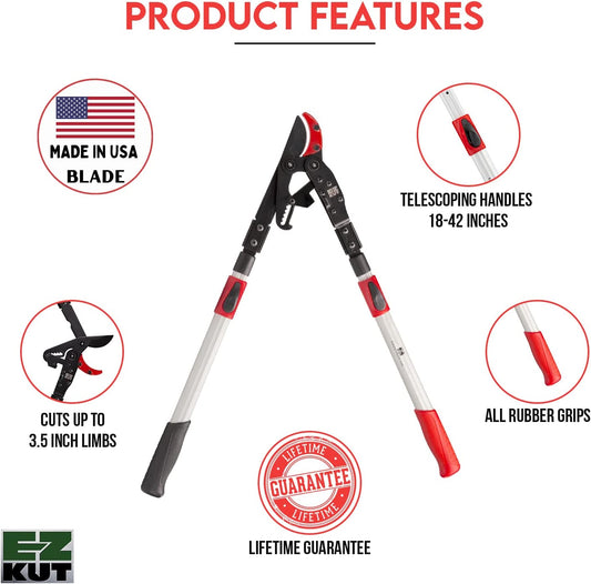 Kut G2 Loppers and Pruners Heavy Duty Branch Cutter. Ratcheting Lopper Branch Tree Limb Cutter. 42 inch Extendable Anvil Hand Loppers Ratchet Function. Tree Pruner Lopper Heavy Duty Tree Trimmer