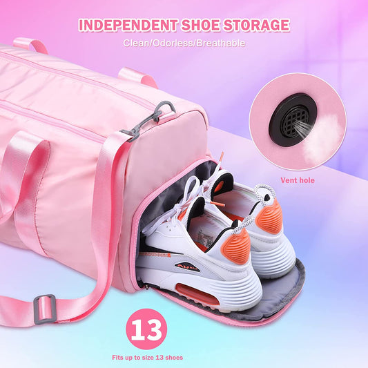 SAMIT -Gym Bag-35L Duffel Bag Large Sports Gym Bag for Women Waterproof Travel Bag Carry on Bag Overnight Weekend Bag Girl Dance Bag with Wet Pocket & Shoe Compartment(Pink)