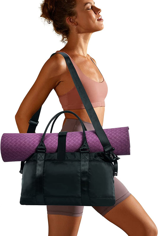 Women Travel Bags Carry On Weekender Bag,Gym Duffle Bag with Yoga Mat Buckle Black