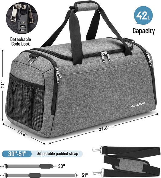 Gym Bag for Women & Men,Travel Duffel Bag for Sports, Gyms and Weekend Getaway, Waterproof Dufflebag with Wet Pocket & Shoes Compartment,Lightweight Carryon Gymbag (Dark gray)