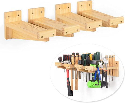 Screwdriver Organizer Tool Rack, ikkle Wood Strips Fixture Screwdriver Holder Hammer Rack, Pliers Holder, Scraper Rack, Wall Mounted Tool Storage for Workbench, Yard, Garage, Garden (4 Pcs)