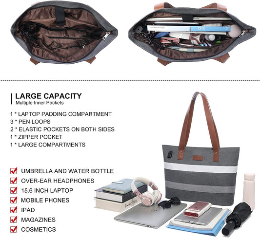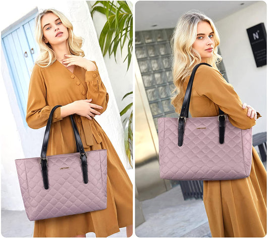 Tote Bag for Women, LIGHT FLIGHT Large Shoulder Bag with Laptop Sleeve Fits 15.6 Inch, 2pcs Set for Work, School