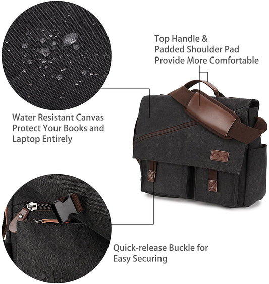 Canvas Messenger Bag for Men Women,Travel Satchel Shoulder bag 15.6 Inch Laptop Bag briefcase Business