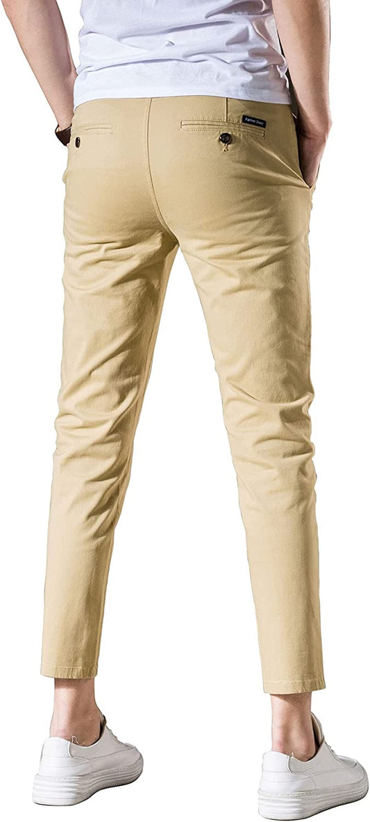 Men‘s Cropped Chino Pants Skinny Fit Chinos Khaki Pant