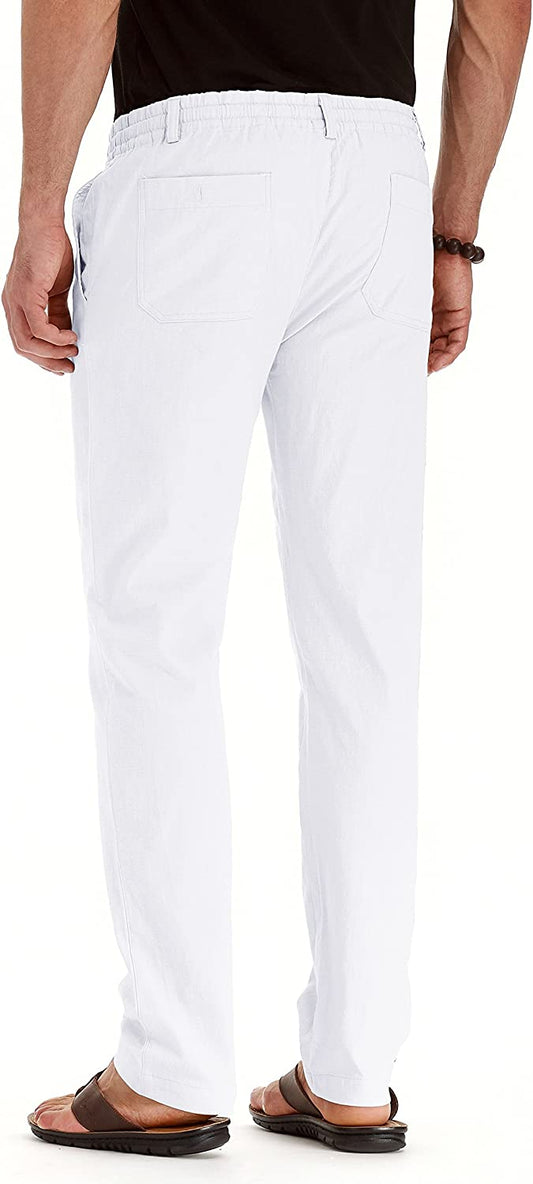 Men's Drawstring Linen Pants Casual Summer Beach Loose Trousers