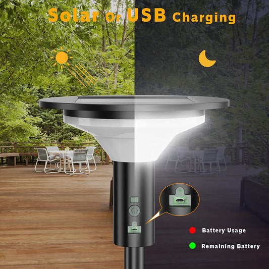 Outdoor&Indoor Solar Lantern Floor Lamp, Waterproof Solar Flickering Flame Light for Garden Decoration, Metal Solar USB Rechargeable Lamp Solar Outdoor Torch Lights(Black)
