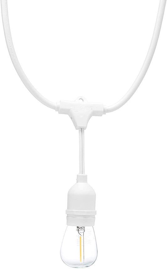 Basics 48-Foot LED Commercial Grade Outdoor String Lights with 16 Edison Style S14 LED Soft White Bulbs - White Cord