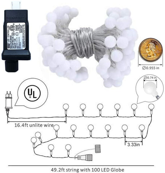 100ft 2-Pack Outdoor String Lights,Dimmable G40 LED String Lights with 52 Shatterproof Clear Bulbs UL Approval Waterproof Globe 1W 2700K Outdoor Lighting for Backyard Porch Cafe Party Wedding Garden