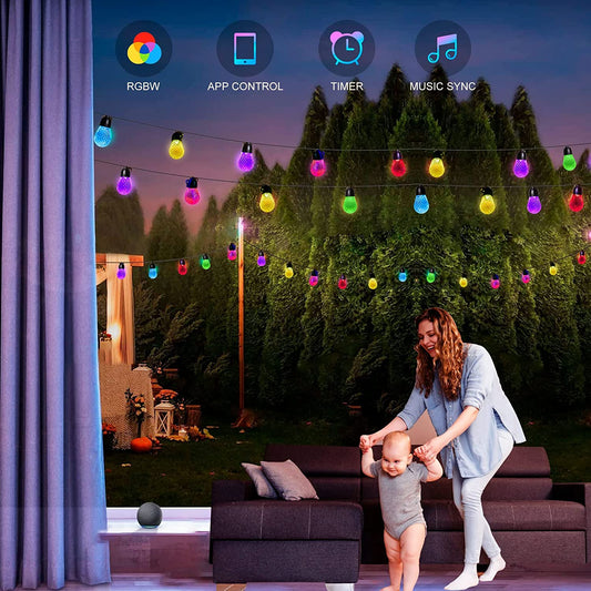String Lights 49ft for Outside GARIBOSH Outdoor Waterproof Shatterproof, Patio Lights String APP and Remote Control Color Changing,Balcony, Garden Party