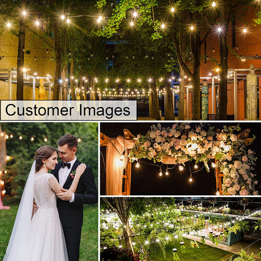 LED Outdoor String Lights 48Ft with Dimmable Edison Vintage Shatterproof Bulbs and Commercial Grade Weatherproof Strand Heavy-Duty Decorative Cafe, Patio, Market Light