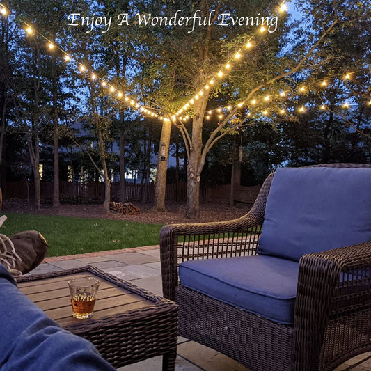 Outdoor String Lights, Patio Lights GANA 48FT CRI 96+, 2200K 12V Safety Voltage, 15 E26 Hanging Sockets, LED Shatterproof S14 Model Bulbs, IP65 Waterproof for Decoration, Festivals, Barbecues