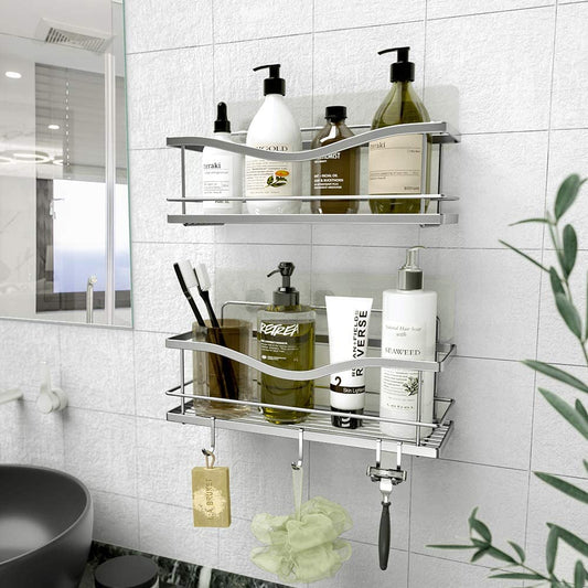 Shower Caddy Bathroom Shelf, No Drilling Traceless Adhesive Bathroom Storage Organizer, SUS304 Rustproof Food Storage Basket, 2-in-1 Kitchen Spice Racks-2 Pack (Polished Silver)…